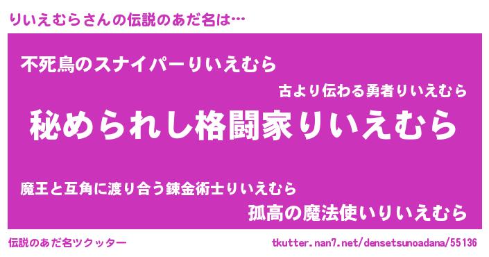 | 男性向けラノベタイトル風あだ名 | 『やはりりいえむらの青春ラブコメはまちがっている 』 |