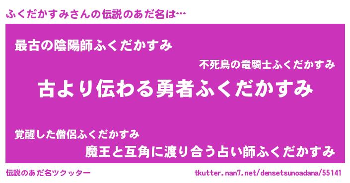| 男性向けラノベタイトル風あだ名 | 『ふくだかすみという概念が存在しない退屈な世界 』 |