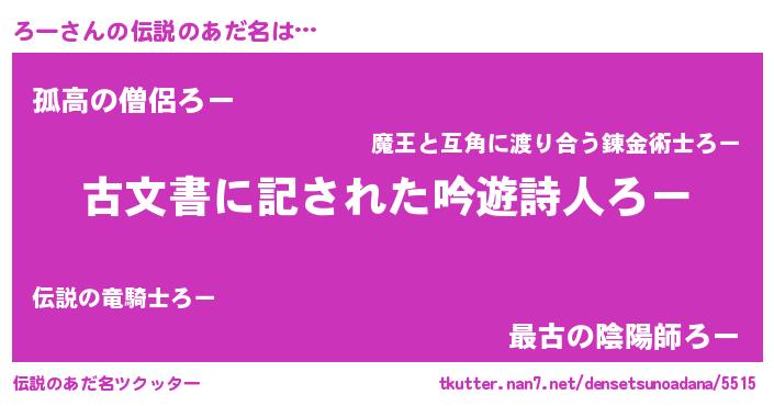| ヒーロー風カッコイイあだ名 | 『究極戦士ロー』『仮面ローダー』 |