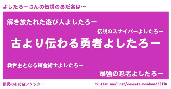 | 意味不明あだ名 | 『住所不定無職よしたろー(71歳)』 |