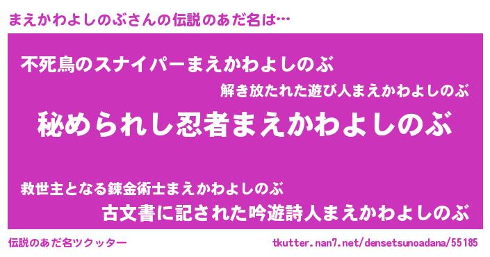 | ファンタジー風あだ名 | 『エターナルマエカワヨシノブー』 |