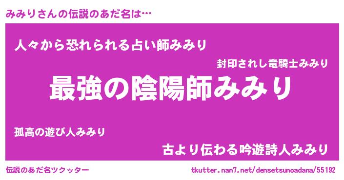 | ファンタジー風あだ名 | 『エターナルミミリー』『クインミット』 |
