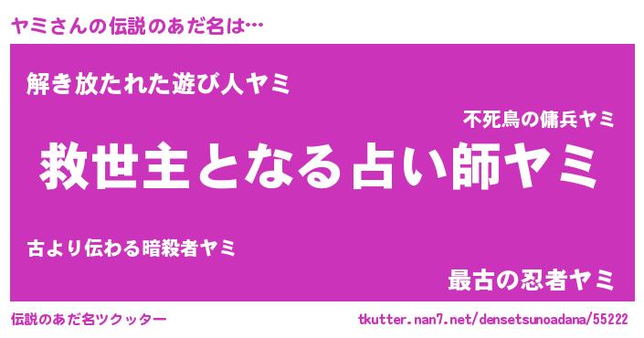| ヒーロー風カッコイイあだ名 | 『天空の使者ヤミ』『幻影騎士ヤミ』 |