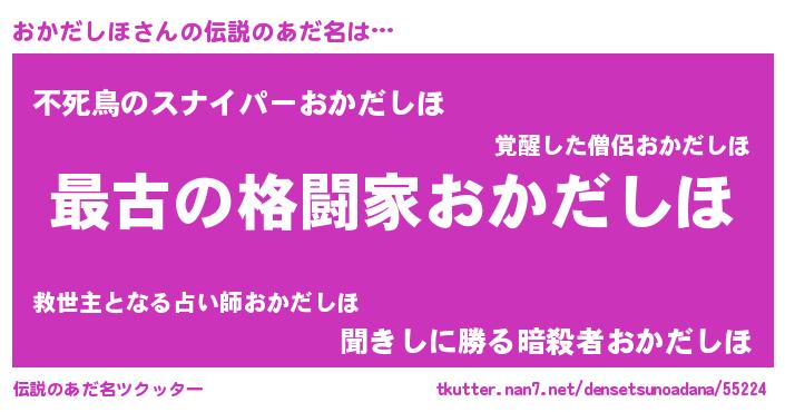 | 男性向けラノベタイトル風あだ名 | 『Re:おかだしほから始める異世界生活』 |