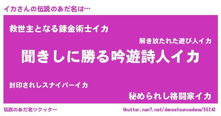 | 意味不明あだ名 | 『住所不定無職イカ(5歳)』『永久保存イカ』 |