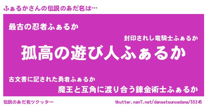 | 意味不明あだ名 | 『エリンギ科ふぁるか属』『自称ふぁるか』 |