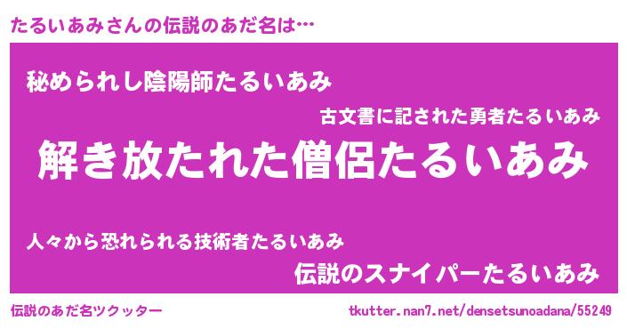 | 男性向けラノベタイトル風あだ名 | 『たるいあみの嫁は女の子じゃないと思った?』 |