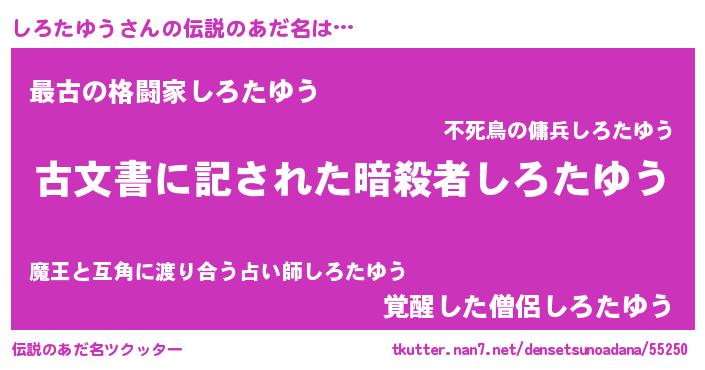 | ヘコむあだ名 | 『しろたゆう(笑)』『なまこ酢』 |
