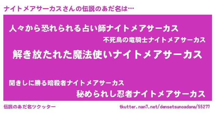 | ヒーロー風カッコイイあだ名 | 『最強戦士ナイトメアサーカス』 |