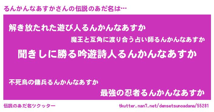 | 男性向けラノベタイトル風あだ名 | 『るんかんなあすかという概念が存在しない退屈な世界 』 |