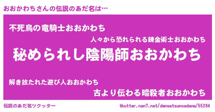 | 男性向けラノベタイトル風あだ名 | 『やはりおおかわちの青春ラブコメはまちがっている 』 |
