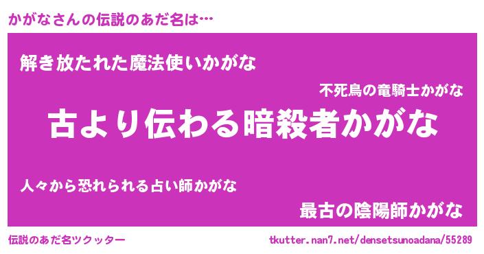| 意味不明あだ名 | 『住所不定無職かがな(53歳)』『自称かがな』 |