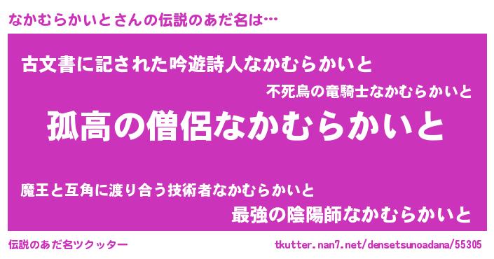 | 意味不明あだ名 | 『住所不定無職なかむらかいと(65歳)』 |