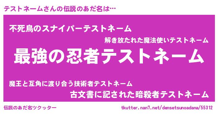 | 意味不明あだ名 | 『テストネームフォーエバー』 |