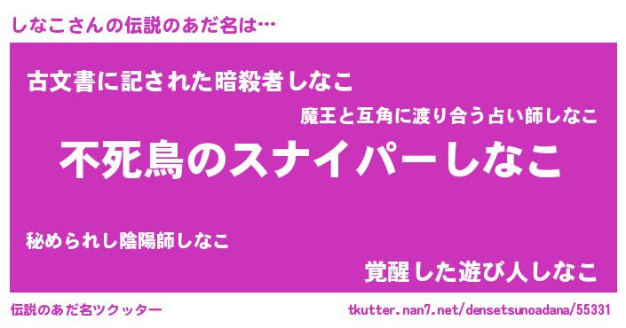 | 胡散臭い通販商品みたいなあだ名 | 『モテモテ間違いなし霊験あらたかなお札…その名も「しなこ」』 |