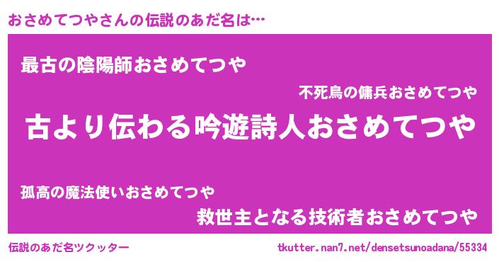 | 意味不明あだ名 | 『住所不定無職おさめてつや(5歳)』 |
