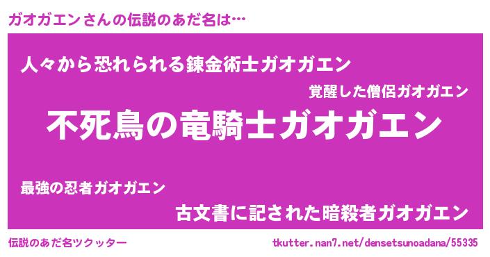 | ファンタジー風あだ名 | 『ガオフェル』『クインガット』 |