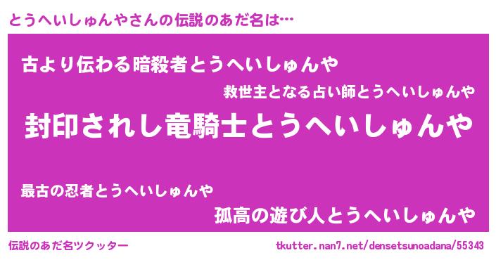 | ヒーロー風カッコイイあだ名 | 『スーパートウヘイシュンヤ』 |