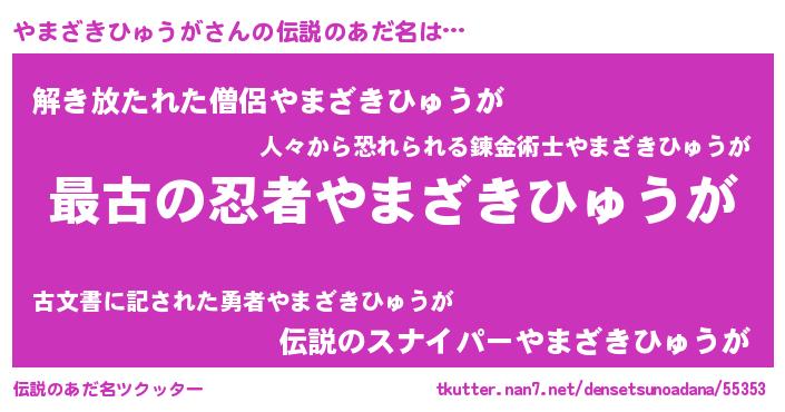 | 男性向けラノベタイトル風あだ名 | 『魔弾の王とやまざきひゅうが』 |