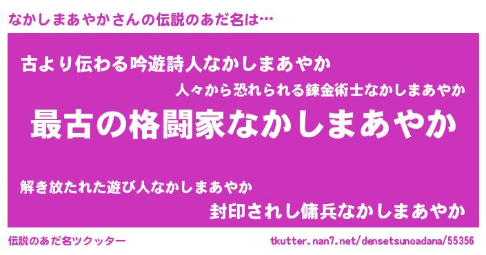 | 意味不明あだ名 | 『住所不定無職なかしまあやか(8歳)』 |