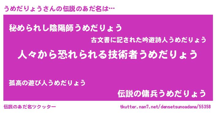 | ヒーロー風カッコイイあだ名 | 『正義の使者うめだりょう』 |