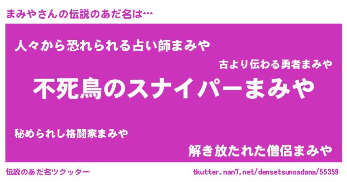 | 男性向けラノベタイトル風あだ名 | 『この素晴らしい世界にまみやを!』 |