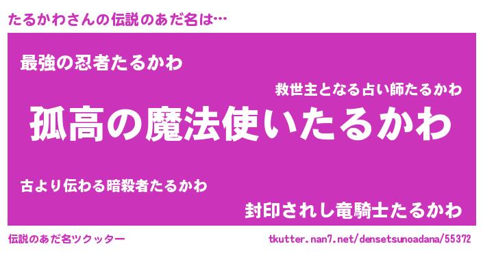 | 胡散臭い通販商品みたいなあだ名 | 『信頼と実績のサプリメント…その名も「たるかわ」』 |