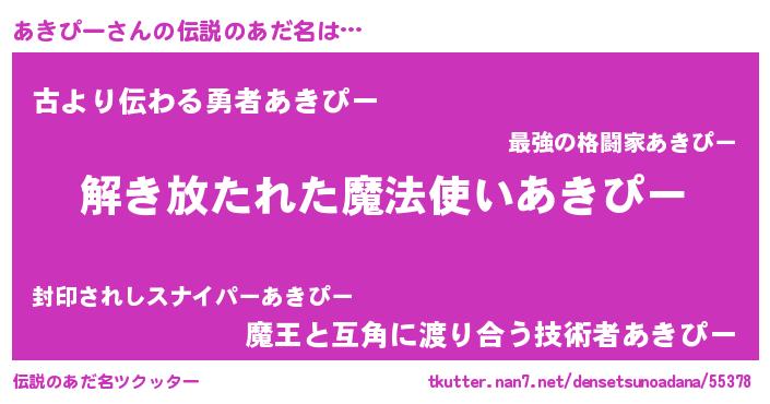 | ヒーロー風カッコイイあだ名 | 『魔戒騎士アキ』『ネオアキピー』 |