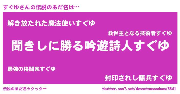 | 意味不明あだ名 | 『めかぶ科すぐゆ属』『永久保存すぐゆ』 |