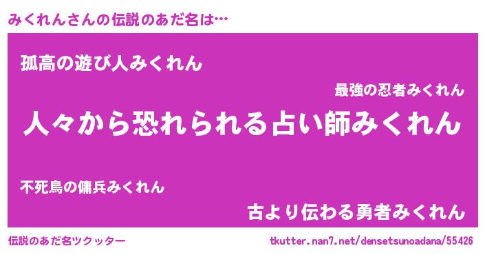 | ヒーロー風カッコイイあだ名 | 『正義の使者みくれん』『仮面ミクダー』 |