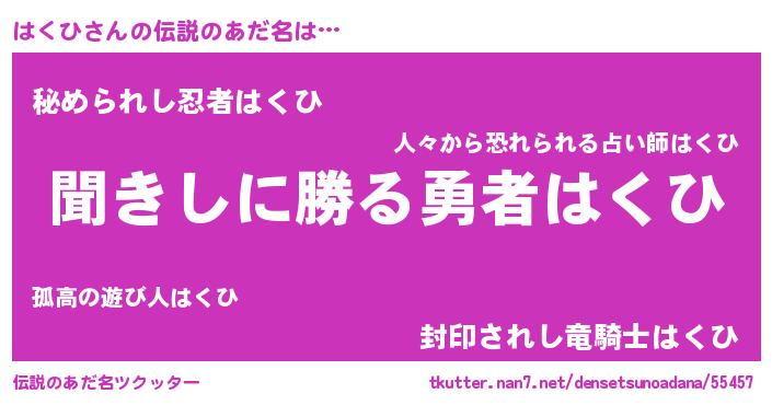 | ポケモン風あだ名 | 『ハクキング』『ハクゴンZ』 |