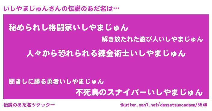 | 意味不明あだ名 | 『住所不定無職いしやまじゅん(89歳)』 |