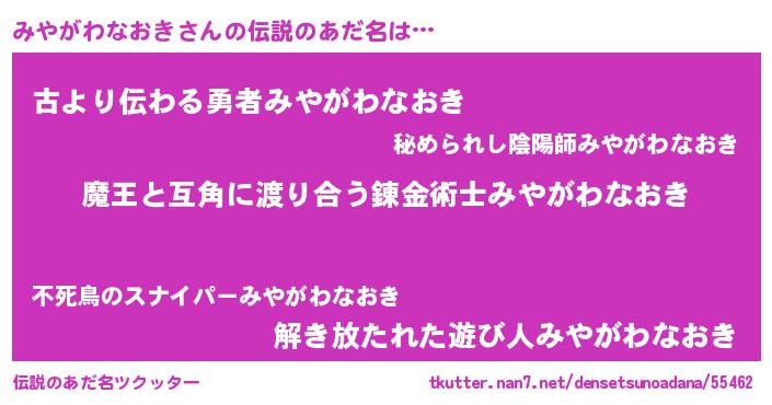 | ヘコむあだ名 | 『みやがわなおき(遠い目)』『みやっぺ』 |