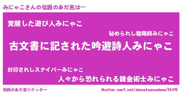| ヘコむあだ名 | 『みにゃこ(笑)』『みにぷりん』 |