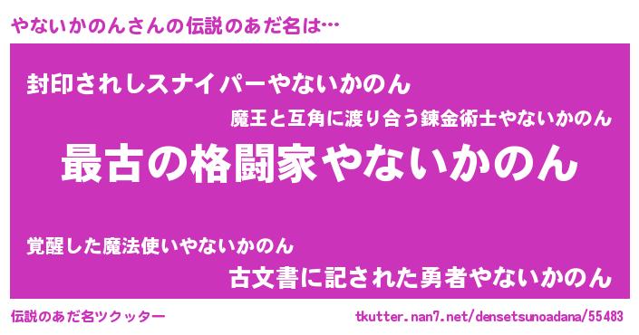 | 意味不明あだ名 | 『住所不定無職やないかのん(7歳)』 |