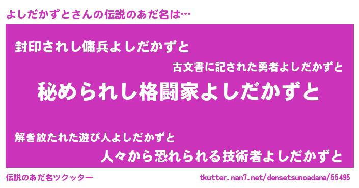 | ファンタジー風あだ名 | 『エターナルヨシダカズトー』 |