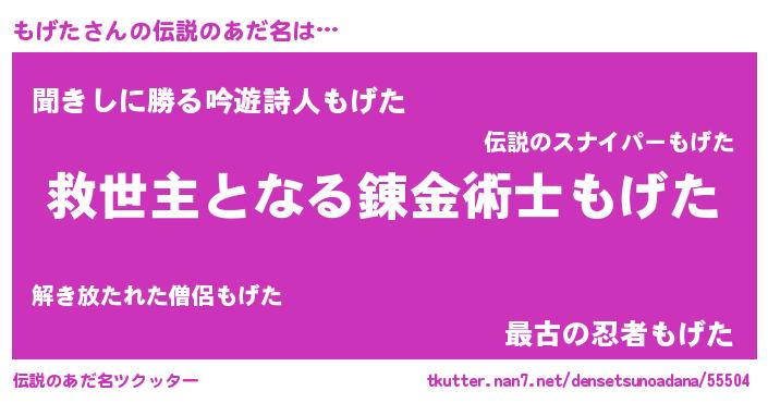 | ヒーロー風カッコイイあだ名 | 『天空の使者もげた』『ネオモゲタ』 |