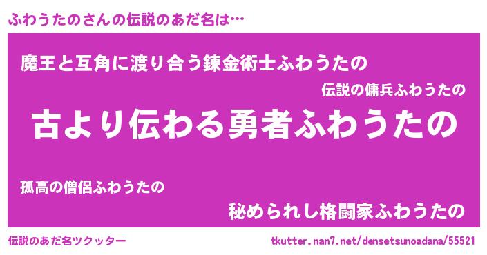 | ヒーロー風カッコイイあだ名 | 『ネオフワウタノ』『スーパーフワウタノ』 |