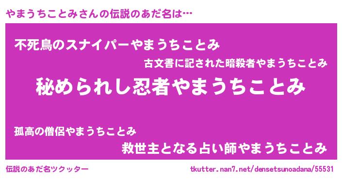 | 意味不明あだ名 | 『自称やまうちことみ』 |