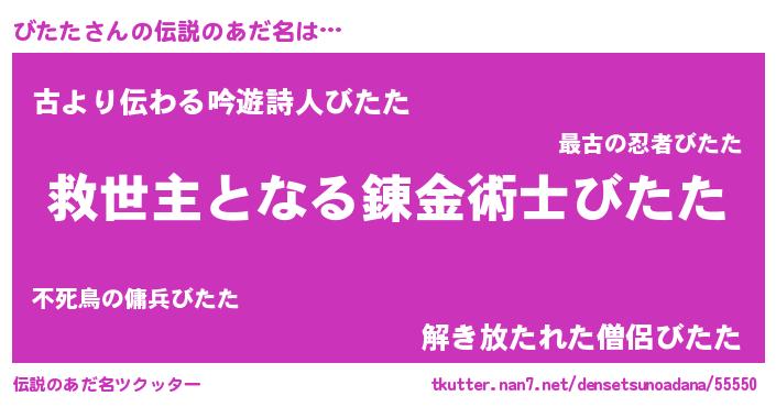 | 胡散臭い通販商品みたいなあだ名 | 『あなたにだけ特別に提供する世界で10本だけ現存している希少なブランデー…その名も「びたた」』 |