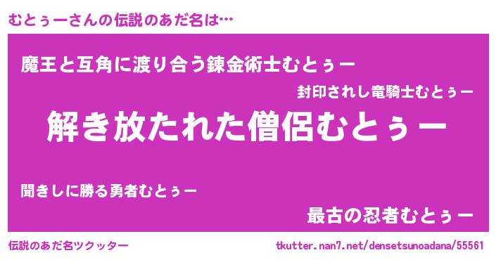 | 意味不明あだ名 | 『とにかく怪しいむとぅー』 |