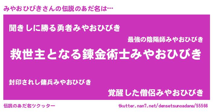 | 男性向けラノベタイトル風あだ名 | 『ノーゲーム・ノーミヤオヒビキ』 |