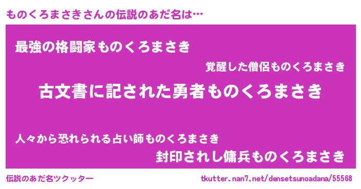 | ヘコむあだ名 | 『ものくろまさき(震え声)』『酢こんぶ』 |