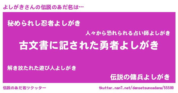 | 意味不明あだ名 | 『つくし科よしがき属』『自称よしがき』 |