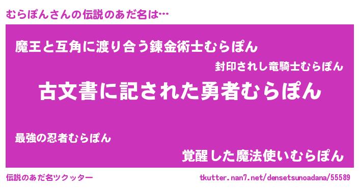 | 意味不明あだ名 | 『永久保存むらぽん』『自称むらぽん』 |