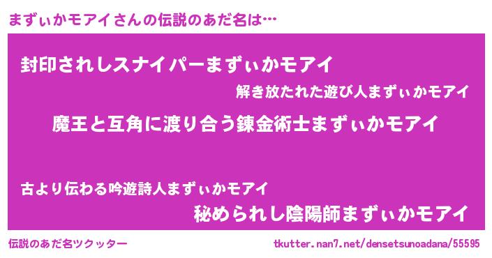 | ヒーロー風カッコイイあだ名 | 『愛の使者まずぃかモアイ』 |