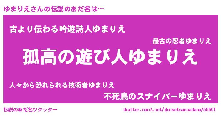 | 意味不明あだ名 | 『住所不定無職ゆまりえ(91歳)』 |