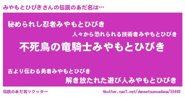 | 男性向けラノベタイトル風あだ名 | 『みやもとひびきの憂鬱』 |