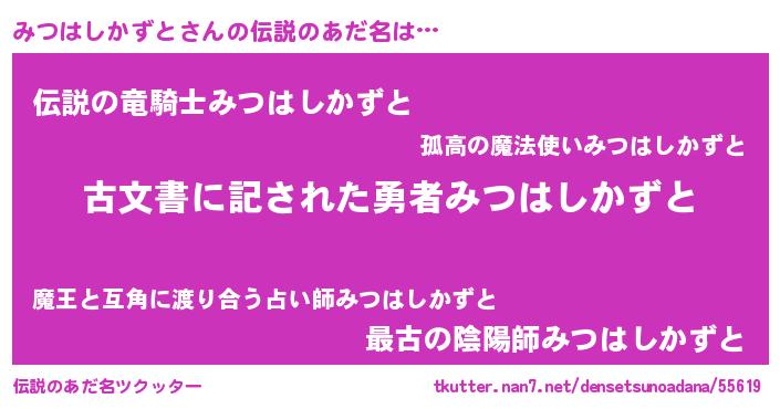 | 意味不明あだ名 | 『永久保存みつはしかずと』 |