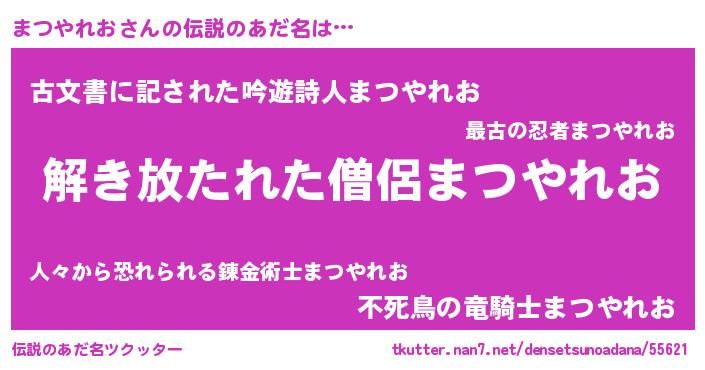 | 男性向けラノベタイトル風あだ名 | 『転生したらまつやれおだった件』 |